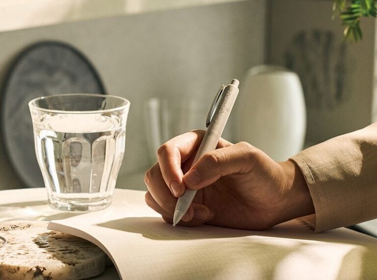 特長は、(ペンボディとして)初めてのさらさらな触感と、陶器と同等の熱伝導率で、熱を溜めにくくグリップがいつもさわやかな点。加えて、材料に陶器に近い重さがあるため筆圧を補助して筆記が スムーズです。